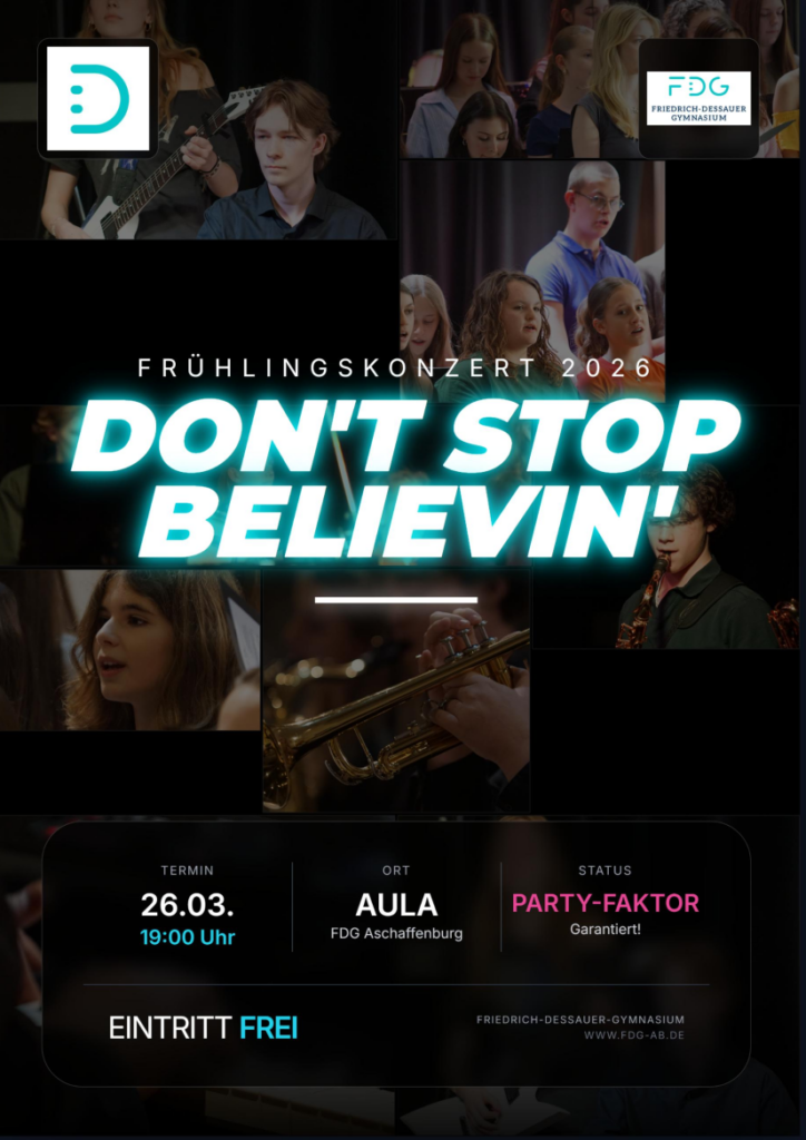 Das Friedrich‑Dessauer‑Gymnasium lädt herzlich ein zum diesjährigen Frühlingskonzert – einem musikalischen Feuerwerk voller Groove, Gänsehaut und garantiertem Party‑Faktor.