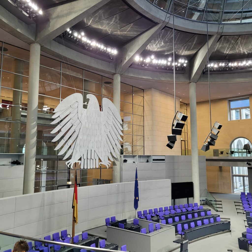 Bereits ganz in der Früh machten wir uns auf den Weg ins ZDF-Studio zum „Morgenmagazin“. Es war sehr spannend, bei dieser Sendung einmal hinter die Kulissen blicken zu können. Danach stand für alle fünf Klassen der Besuch im Bundestag mit einem Vortrag im Plenarsaal an. Beim anschließenden Treffen mit dem Aschaffenburger Abgeordneten Niklas Wagener wurden die zahlreichen Fragen der Schüler*innen sehr gut beantwortet. Andere Klassen bekamen in der ehemaligen Stasi-Zentrale in der Normannenstraße Einblicke in Akten und die perfiden Methoden des Geheimdienstes.