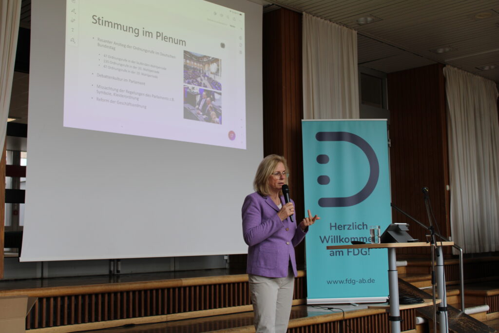 Im Rahmen unseres PuG-Unterrichts durften wir die Bundestagsvizepräsidentin Andrea Lindholz am Friedrich-Dessauer-Gymnasium begrüßen. In ihrem Vortrag gab sie uns einen spannenden Einblick in ihren Arbeitsalltag und die Abläufe im Deutschen Bundestag.