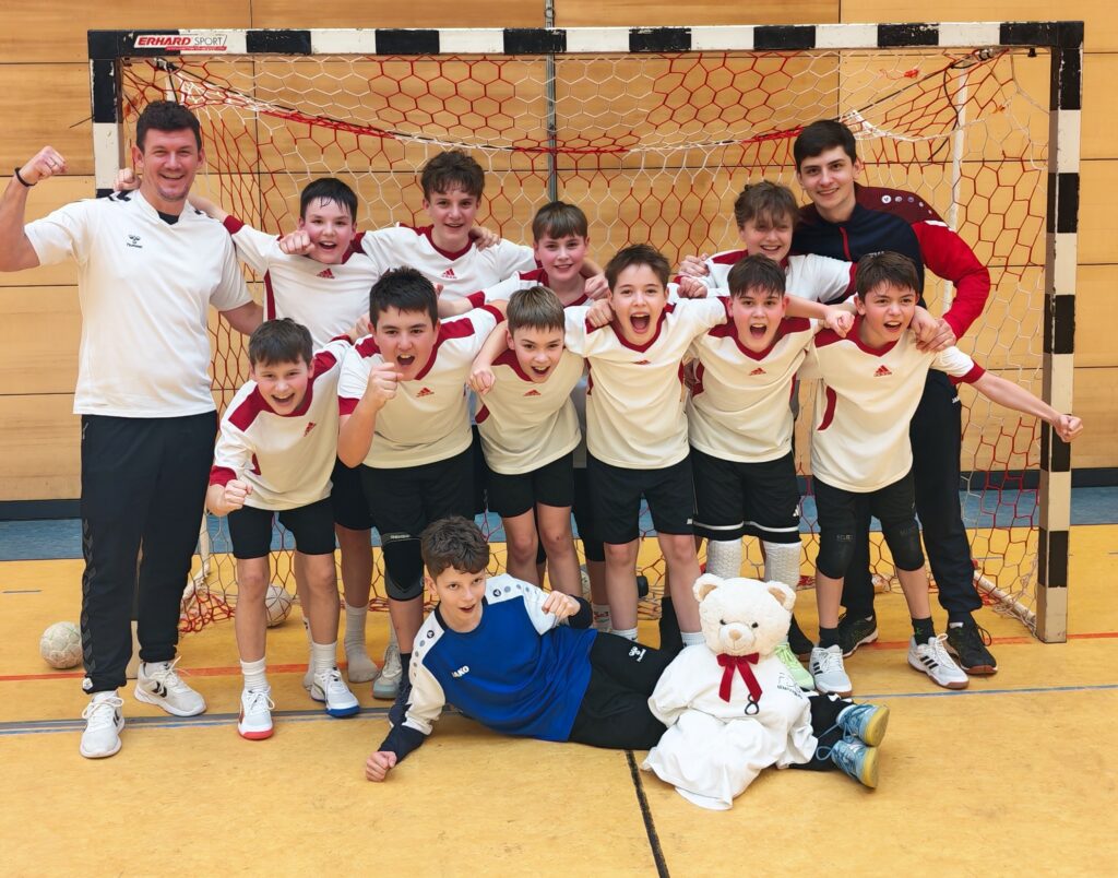 Die bayerischen Meister im Handball der Altersklasse Jungen IV vom Friedrich-Dessauer-Gymnasium nach ihrem Sieg auf der nordbayerischen Meisterschaft (Foto: Alexander Pabst). Großen Anteil am Erfolg haben Schülertrainer Tom Wetzel, die engagierten Vereine sowie die enge Zusammenarbeit von Eltern, Schule und Trainern wie Matthias Rieth und Matthias Müller. Das FDG ist damit aktuell eine Top-Adresse im bayerischen Schulhandball – und will in Berlin auch bundesweit überzeugen.
