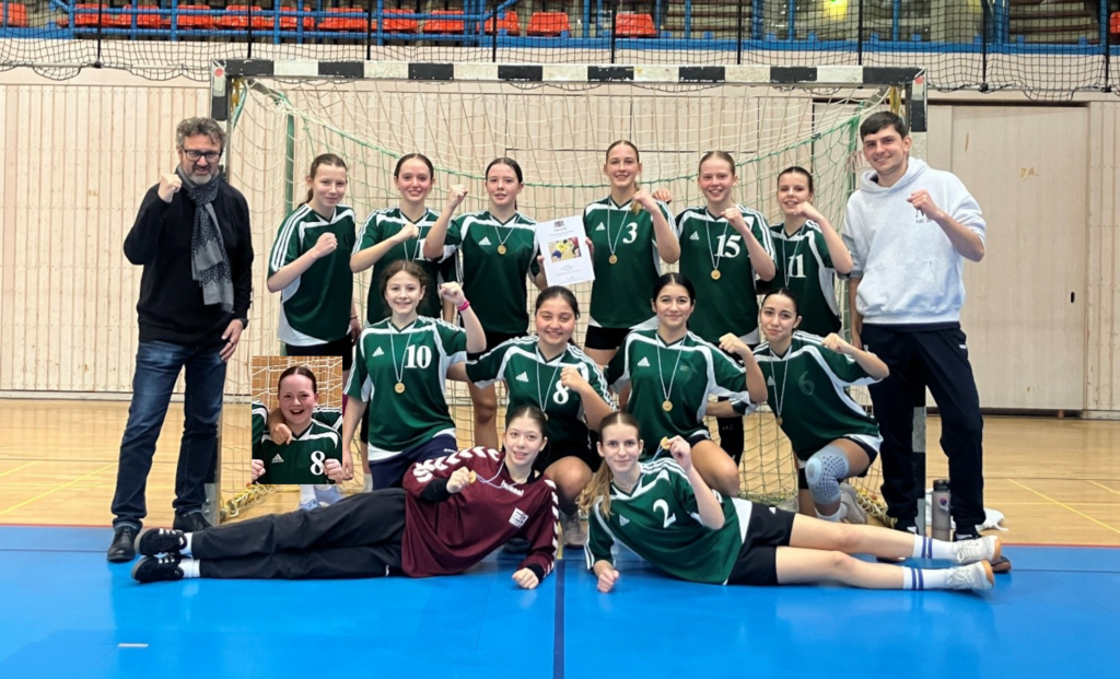 Die erfolgreichen Handballerinnen des Friedrich-Dessauer-Gymnasiums Aschaffenburgnach dem Sieg der Unterfränkischen Meisterschaft (Fotos: Angela Teichert). Die Jungen IV (2013–2015) gewannen alle Turniere von der Stadtmeisterschaft bis zum Nordbayerischen Titel und krönten sich im Landesfinale in Günzburg zu Bayerischen Meistern. Damit sicherten sie sich das Ticket zum Bundesfinale in Berlin.